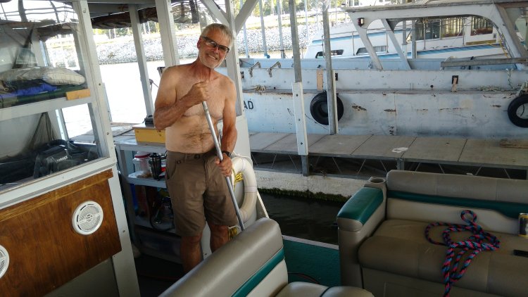 Reg tending to boat chores.