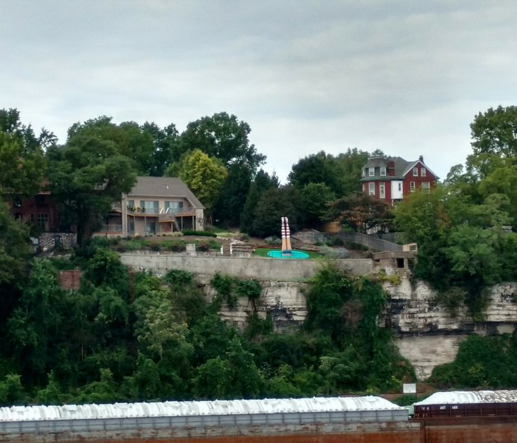 Bigger homes dot the bluffs. Some with unusual ornaments.