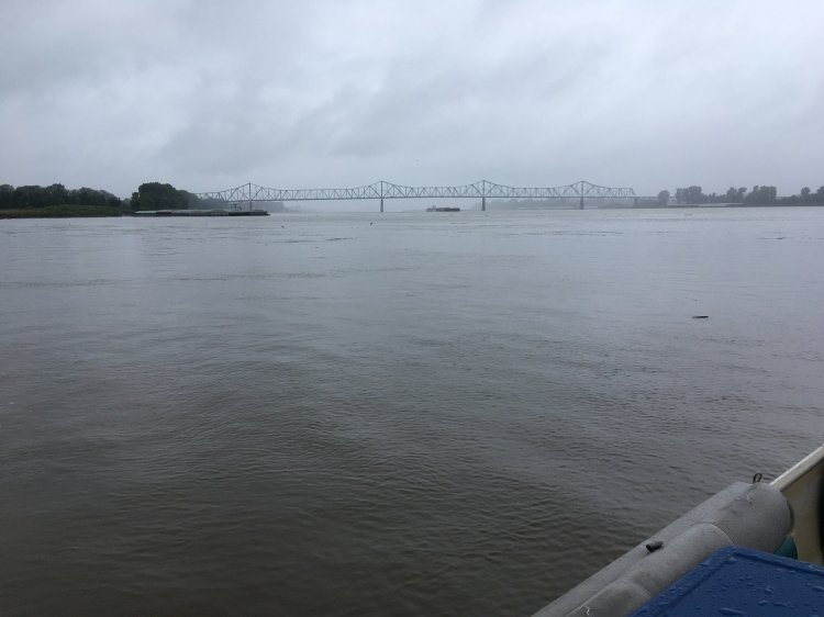 Reaching Cairo IL and the confluence of the Upper Mississippi and the Ohio Rivers. The Ohio is the larger river at this point. MikoMan is at mile 852, roughly the halfway point of the trip.