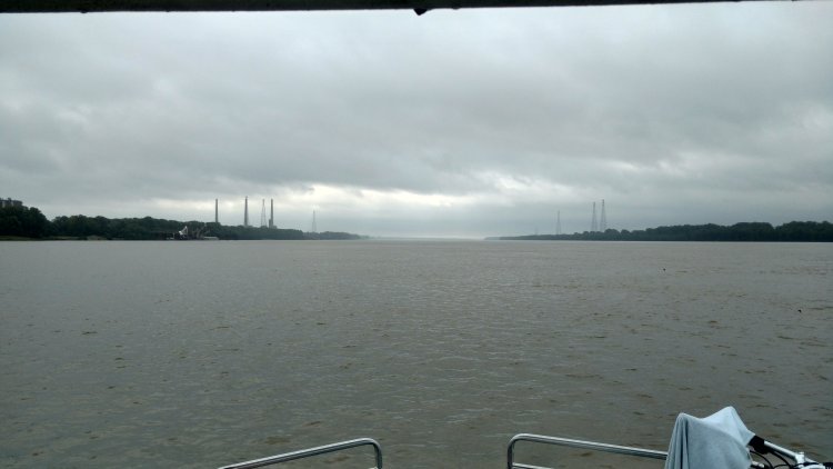 Rain all morning. Sometimes difficult to see, but not many boats or barges out. Several power plants along the way.