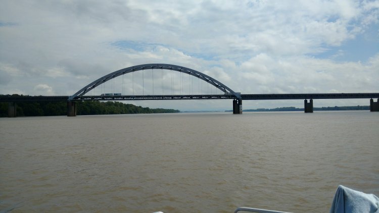 MikoMan was still not feeling well and the outboard did complain. Made it to Metropolis IL, home of Superman! Picked up a few groceries and started out for Paducah, just 8 miles away.