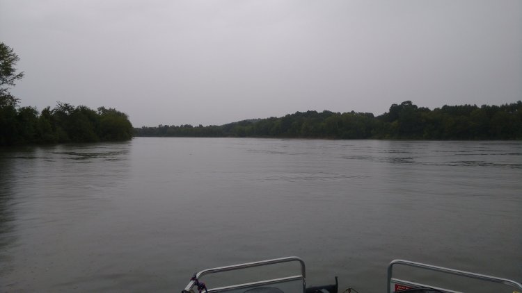 It was a very nice, quiet night on the River. Started raining again at 4:30 AM. Battened down the tarps for a few more hours of sleep.