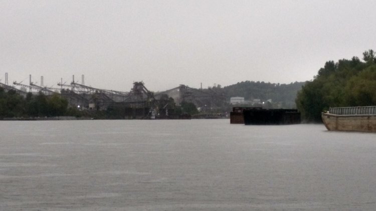 Heavy industrial shoreline in places. This is an aggregate crushing facility.
