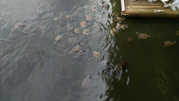 And the resort’s namesake Green Turtles just a few feet from our slip, more than willing to chow down on the turtle food sold in the marina store.