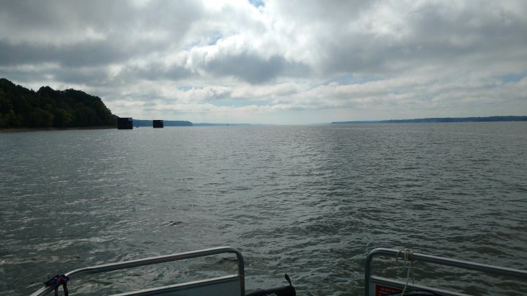 Kentucky Lake is a huge reservoir of the Tennessee River, almost 70 miles long. We are headed “upstream”. No current, water clear to 2+ feet, greenish rather than brown, no weeds, Wonderful!!
