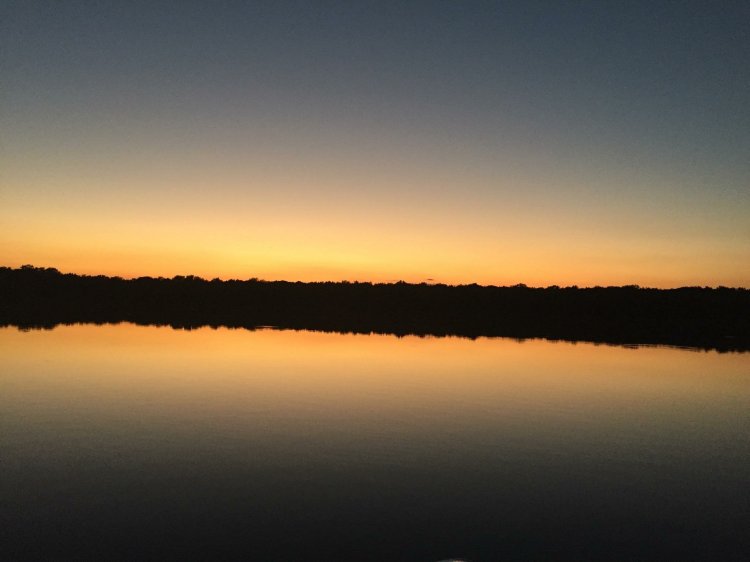 Daylight at the Aqua Yacht Harbor Marina. Kind of a noisy night with the highway being so close. Saw many Gar fish at the fuel dock last night after dark.