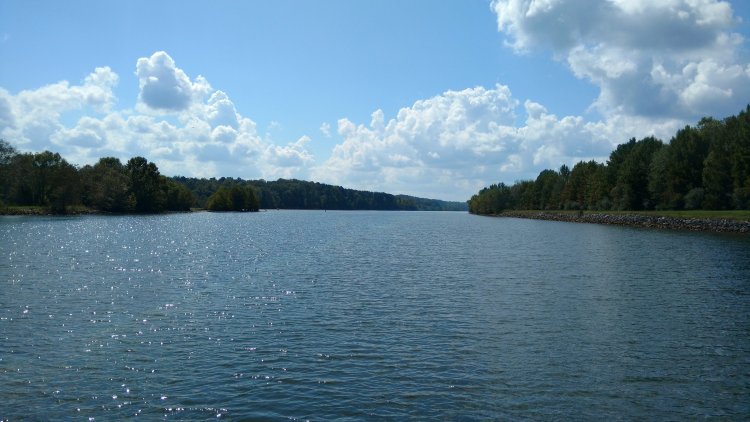 End of the “cut” opening into Bay Springs Lake. Nice lake, good water quality. End of the riprap! Beaches prevalent.