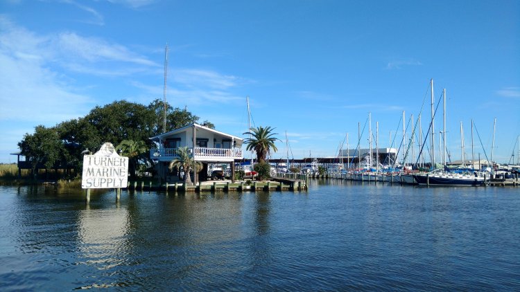 Got up before sunrise to get an early start to take advantage of predicted calmer winds in Mobile Bay, 12 miles away.